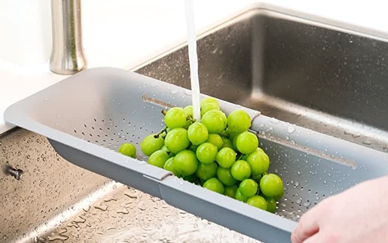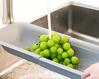 Rinse fruits, veggies, and pasta hands-free - adjustable to fit most sinks and easy to store.