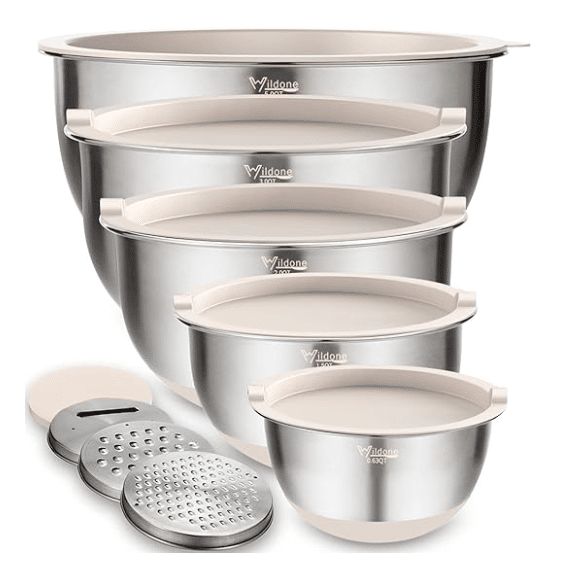 Durable stainless steel bowls with lids - perfect for mixing, prepping, and storing ingredients.