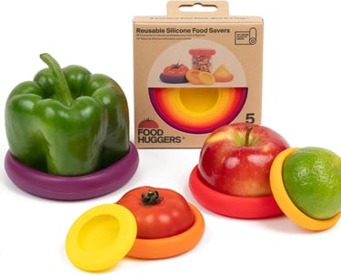 Eco-friendly silicone covers - keep fruits, vegetables, and cut foods fresh without plastic wraps.